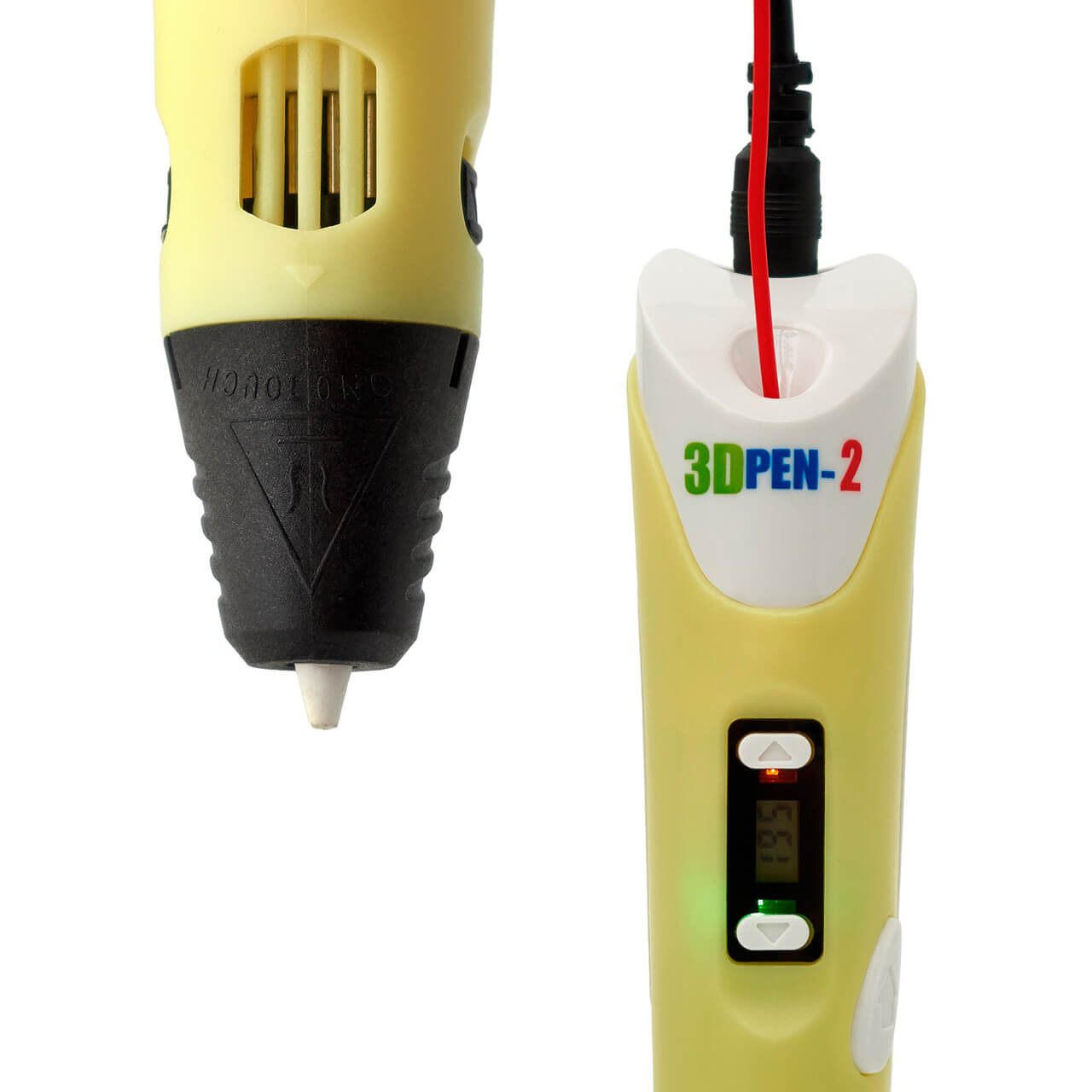 3D ручка 3DPEN-2 имеет всё для комфортного рисования: лёгкий вес и удобная форма корпуса позволяют использовать её как ребенку, так и взрослому человеку. На информативном дисплее отображается выбранный тип пластика и температура нагрева. С помощью ползунка, расположенного на корпусе 3D ручки, можно плавно и с легкостью регулировать скорость подачи пластика. Помимо самой ручки в комплект поставки входят 3 метра пластика и специальная подставка, что позволяет начать 3D рисование сразу же, после приобретения товара